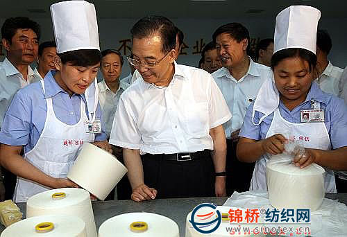 這是溫家寶在魏橋創(chuàng)業(yè)集團紡紗織布車間與紡織女工親切交談。