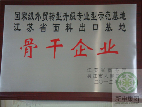 新申集團獲得“國家級外貿轉型升級專業(yè)型示范基地、江蘇省面料出口基地骨干企業(yè)”,并被授予“2012年度中國東方絲綢市場流行面料聯(lián)盟企業(yè)”,名至實歸?!   ?/p>
