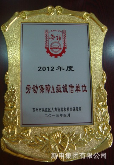 新申集團(tuán)獲2012年度“勞動(dòng)保障A級誠信企業(yè)”殊榮