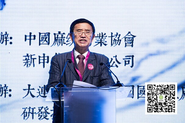 中國(guó)麻紡行業(yè)協(xié)會(huì)許吉祥會(huì)長(zhǎng)致開(kāi)幕詞 新申集團(tuán)董事長(zhǎng)李建峰、設(shè)計(jì)師孫林與模特合影