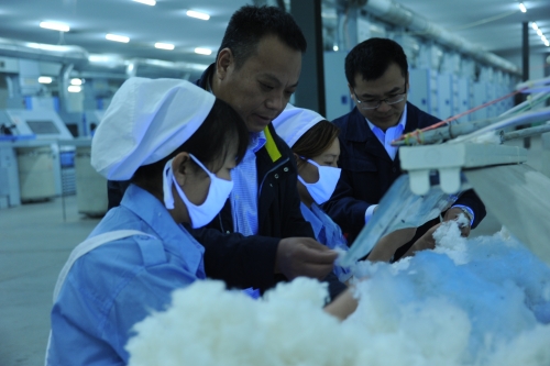 鑫旺棉業(yè)有限公司所使用的棉花,通過“三絲”檢測設備檢測,再經(jīng)過人工檢驗,在確保棉花 從棉花加工起步到棉紡 鑫旺棉業(yè)位于豫東平原、河南主要產(chǎn)棉區(qū)尉氏縣產(chǎn)業(yè)集聚區(qū)。這里交通便利、地理位置優(yōu)越、環(huán)境優(yōu)美,是尉氏經(jīng)濟發(fā)展之中心,隸屬于開封市。今年45歲的史振雷,1996年在尉氏縣小陳鄉(xiāng)供銷社工作時就萌生了自主創(chuàng)業(yè)的念頭。1999年9月,國家棉花政策放開,史振雷發(fā)揮當?shù)孛藁ㄙY源豐富、業(yè)務熟悉的優(yōu)勢,創(chuàng)建了鄉(xiāng)里第一個棉花收購加工廠。農(nóng)家出身的史振雷,從小養(yǎng)成吃苦耐勞的習慣、鍥而不舍的秉性,加之在供銷社當主任、書記練就的智慧和才能,短短3年,生意做得風生水起。工廠從當初20多人、小型打包機、年收購棉花1500噸,迅速發(fā)展到50余人、設備換成200型打包機、年收購棉花5500噸,增長了2.7倍,成為鄉(xiāng)鎮(zhèn)企業(yè)的領跑者。 2003年6月,企業(yè)完成原始積累后,為了拉長產(chǎn)業(yè)鏈,提高附加值,在縣政府政策的支持下,史振雷決策籌建棉紡廠。公司從建廠初期的不足萬錠發(fā)展到15萬錠,運營從1個廠發(fā)展到3個子公司,資產(chǎn)從1500萬元發(fā)展到2.5億元,員工從180人發(fā)展到800人。企業(yè)發(fā)展期間,還收購、兼并了天誠棉業(yè)和京尉紡織公司兩家困難企業(yè)。企業(yè)滾動發(fā)展,規(guī)模、資產(chǎn)、員工,分別比當初增長7倍、15.6倍和9倍。目前,鑫旺棉業(yè)已形成集棉花收購、加工、棉紗生產(chǎn)、銷售為一體的中大型企業(yè)。公司年可產(chǎn)棉紗1.5萬噸、銷售收入近4.5億元。 轉型升級中生存發(fā)展 日前,記者走進公司生產(chǎn)現(xiàn)場,映入眼簾的是紗錠飛轉、紗線流水般落錠的立體畫卷,車間滿負荷生產(chǎn),員工忙碌的身影。公司到處呈現(xiàn)一派勃勃生機的繁榮景象。 目前,在經(jīng)濟大勢下滑、棉花走勢復雜、市場環(huán)境變化、生產(chǎn)成本上升,紡織行業(yè)面臨“新常態(tài)”的困難情況下,紡織企業(yè)普遍感到生存壓力巨大。 然而,在這里卻是生產(chǎn)銷售形勢喜人,棉紗供不應求,訂單已安排生產(chǎn)到年底。今年1~10月,公司完成銷售收入3億元,比上年同期增長18%;利潤增幅仍保持較好的水平。這些閃光的成就,述說的是鑫旺棉業(yè)的興旺和輝煌,證明的是企業(yè)的特色產(chǎn)品和經(jīng)營管理水平。 究竟是什么成就了今天的鑫旺?它有哪些優(yōu)勢和特點?史振雷概括了五點:一是“機制優(yōu)勢”,鑫旺是民營企業(yè),歷經(jīng)磨難形成的靈活機制優(yōu)勢,是其他國有改制企業(yè)不具備的;二是“團隊優(yōu)勢”,公司有一個團結務實的班子和穩(wěn)定的員工隊伍;三是“產(chǎn)品優(yōu)勢”,“鑫旺”牌棉紗是河南省“名牌產(chǎn)品”,質量穩(wěn)定,一致性好,已得到客戶的認可;四是“棉花優(yōu)勢”,鑫旺棉業(yè)本來就是從事棉花經(jīng)營的企業(yè),現(xiàn)在新疆建有棉花種植、收購、加工基地,自供棉占企業(yè)用棉總量的70%以上,成本低;五是黨建工作和“企業(yè)文化優(yōu)勢”,黨組織在企業(yè)發(fā)揮的核心作用。 “近年來,東南亞國家中低支紗大量涌入中國。由于國內(nèi)外棉價差巨大,加之用工成本高,低支紗缺乏競爭力,企業(yè)不得不轉向生產(chǎn)中高支紗。這也是棉紡行業(yè)的發(fā)展趨勢。”史振雷表示,兩年前,企業(yè)就著手調(diào)整產(chǎn)品結構,轉型升級,當時投入3000多萬元,進行大規(guī)模設備改造和升級。公司采用上海昊昌精梳機、同和緊密紡、長紡科技賽絡緊密紡、上海淳瑞科技氣流紡等國內(nèi)一流設備,將原來生產(chǎn)的普梳32s、40s棉紗,調(diào)整為生產(chǎn)精梳賽絡緊密紡60s、80s以上棉紗。既避開了低支紗、同質化惡性競爭,又提高了產(chǎn)品檔次和附加值,跨入了高端市場,形成了企業(yè)新的經(jīng)濟增長點。 同時,企業(yè)通過技術培訓、崗位練兵、技術比武等多種形式,提高員工隊伍操作技術,一線員工優(yōu)一級手率達到85%。員工大部分是熟練工,適應了企業(yè)的生產(chǎn)需要。企業(yè)還通過開展技術攻關活動,優(yōu)化工藝,提高效率,節(jié)能降耗,降低落棉,從而實現(xiàn)效益最大化。嚴格質量標準,實現(xiàn)道道把關,確保產(chǎn)品質量達到烏斯特2011公報5%水平,并獲得“縣長質量獎”。公司堅持把產(chǎn)品做精,把企業(yè)做扎實。目前,公司在廣東、福建、浙江、江蘇等省市設有5個辦事處,固定客戶有100多家,產(chǎn)銷率達到100%。 史振雷多次強調(diào)關心員工生活、關心員工成長,激勵優(yōu)秀員工進步,抓好人才培養(yǎng),為優(yōu)秀員工提供更多施展才智的平臺和機會,讓員工工作愉快,生活幸福。員工在這里有尊嚴、受尊重,感到有干頭、有盼頭。員工進廠簽合同,交“三金”,工資逐年增長,勞保福利逐年提高,逐步解決員工的后顧之憂,向“現(xiàn)為我用,老有我養(yǎng)”的目標邁進。公司還積極參加社會公益事業(yè),為汶川地震捐款,為特困職工幫扶,為當?shù)卮迕翊蚓?、修路、架設路燈,支持教育事業(yè)等,累計捐款180余萬元。 鑫旺棉業(yè)在轉型中得到生存,在生存中又得到了發(fā)展,引起了各級領導的關注和支持。原省委書記盧展工、現(xiàn)河南省委