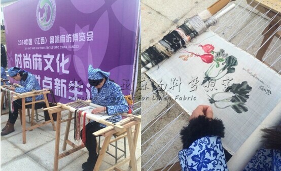 近日,2014中國(guó)(江西)國(guó)際麻紡博覽會(huì)在江西省新余市成功舉行,400多家國(guó)內(nèi)外麻紡企業(yè)齊聚一堂,交流麻紡工藝、采銷(xiāo)麻紡產(chǎn)品,讓人看到傳統(tǒng)麻紡煥發(fā)出的勃勃生機(jī)。來(lái)自贛西學(xué)院服裝設(shè)計(jì)專(zhuān)業(yè)的40名學(xué)生現(xiàn)場(chǎng)表演夏布刺繡,不少到場(chǎng)嘉賓和市民親自拿起針線上前體驗(yàn)了一把夏布刺繡的魅力。