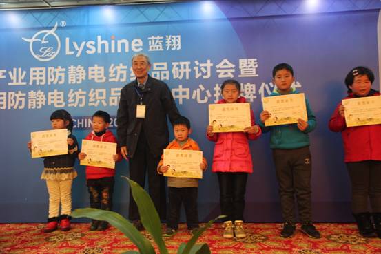 2013年12月17日,在中國產(chǎn)業(yè)用防靜電紡織品研發(fā)中心成立儀式上,中國工程院院士姚慕專門為“藍翔杯”“我心目中最美的勞動者”少兒繪畫比賽的獲獎者頒獎,這一幕引起了出席儀式的嘉賓的特別關(guān)注,能夠接受院士爺爺?shù)念C獎,對孩子們來說是一次難得的機會,也許,對他們今后的人生都會產(chǎn)生積極的影響。本次“我心目中最美的勞動者”繪畫比賽自當年11月征稿以后,不到一個月時間,就收到近千件作品,孩子們以豐富的想象,大膽的筆觸,絢爛的色彩,描繪了他們心目中最美的勞動者,有身著太空服的環(huán)衛(wèi)工人,有在“藍翔”果園歡樂勞動的果農(nóng),也有身著防靜電服的石油工人和煤礦工人,也有救死扶傷的白衣天使,比賽作品形象地詮釋了“把安全健康舒適獻給勤勞智慧的產(chǎn)業(yè)工人”的愿景。