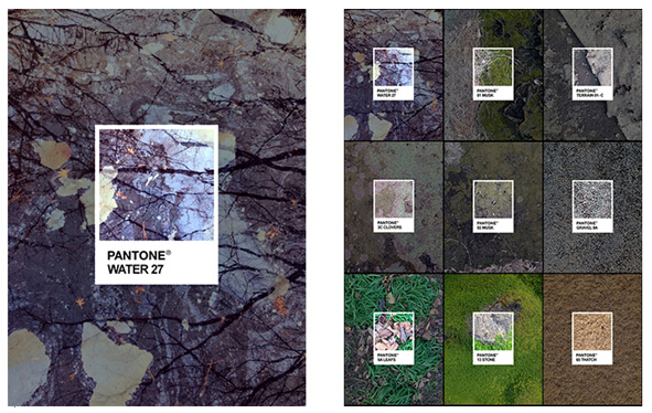 這又是1個由自然環(huán)境激發(fā)的讓人挪不開視線的創(chuàng)意方案。它看上去并不離奇,因自然中確實充滿讓人想象不到的豐富色彩,即使人們時常會忽視掉它們。這位藝術(shù)家給我們1個可以觀察PANTONE(彩通)色彩的自然來源的機會,也因此給視覺帶來賞心悅目的體驗。