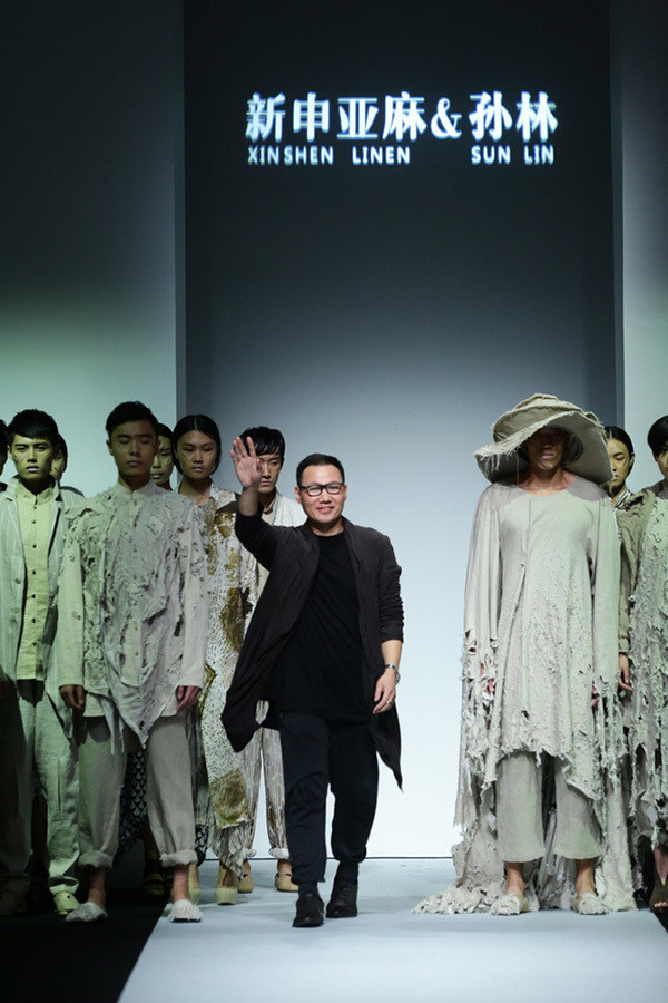 “我就是想將服裝的體面空間結(jié)合亞麻面料的自然肌理形態(tài),試圖以體面空間層次穿插的形式來表達(dá)質(zhì)樸脫俗復(fù)古時尚的意境。崇尚自然綠色的環(huán)保理念,將自然抽象元素和浪漫又優(yōu)雅的風(fēng)格融為一體。”多年來,設(shè)計師孫林一直堅持著“精神的自由,民俗的融合”的理念,始終專注著亞麻流行趨勢研究與麻棉類天然纖維服裝設(shè)計。10月19日,以“紋•痕”面料為主題的“上海時裝周新申亞麻•孫林2016春夏時裝作品發(fā)布”首秀上海時裝周。與其說是他人生職業(yè)生涯的一場“大閱兵”,不如說是時尚亞麻對他的認(rèn)可與肯定。