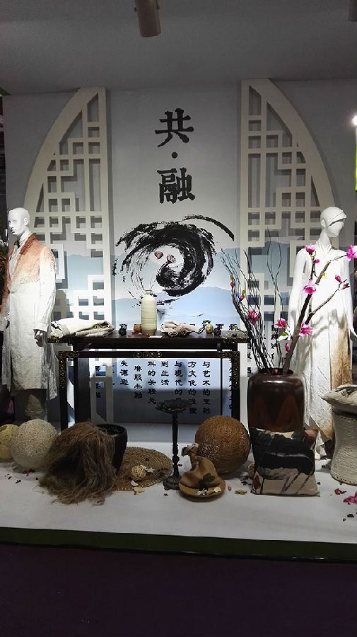 “主題‘共融’的靈感源自中國傳統(tǒng)文化中‘和而不同’的東方智慧,主要體現(xiàn)物與物之間相輔相成,相互協(xié)調(diào)、交融,最終走向多樣性的統(tǒng)一。只有將設(shè)計與產(chǎn)品共融,面料與生活共融,人與自然和諧共融,我們的產(chǎn)品才能打動人心,融合入生活的各個方面,改變并影響大眾消費習(xí)慣。”李建峰介紹,圍繞“共融”主題,新申亞麻特意將80平米的展館分為了服裝、配飾成品區(qū)、亞麻面料解決方案區(qū)、上海時裝周“紋•痕”專區(qū)、會客區(qū)域等,將理念體現(xiàn)了各個細(xì)節(jié)。