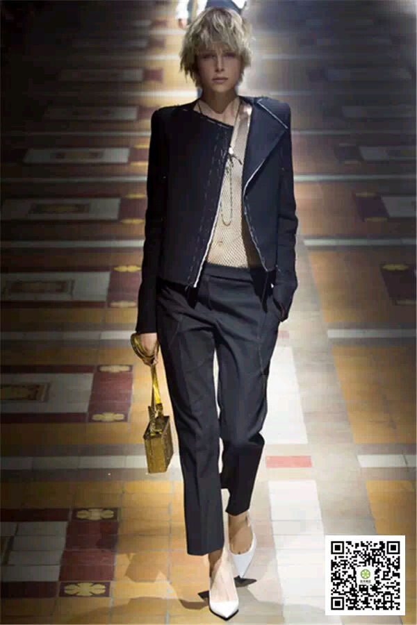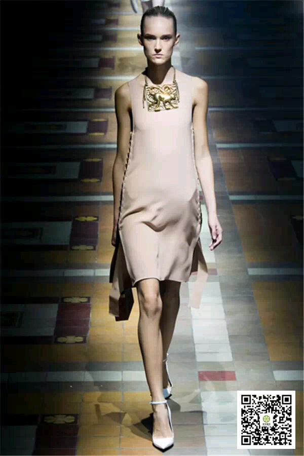 LANVIN2015春夏女裝系列的配色主打肌膚本身的色調(diào),包括灰色、卡其色、淡褐色和裸色,仿若精致無痕的妝容,流暢而細膩。設計師以網(wǎng)眼、開衩、孔眼和珠寶飾帶等多種元素,通過包容、強調(diào)等手法凸顯女性在行走時散發(fā)的無限魅力。