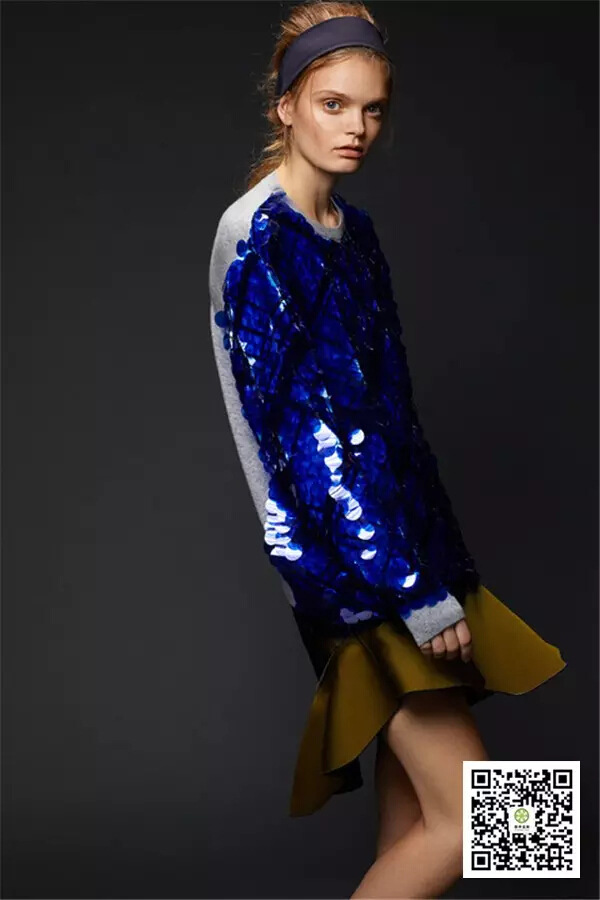PreenbyThorntonBregazzi好比“戴珍珠耳環(huán)的少女”。不規(guī)則剪裁的荷葉邊短裙搭配亮片線(xiàn)衫,眉里眼神里有著不能言語(yǔ)的故事。