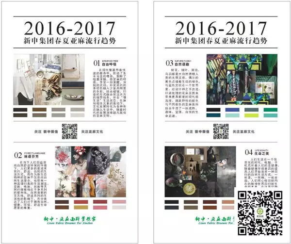 由中國(guó)麻紡織行業(yè)協(xié)會(huì)、新申集團(tuán)、亞麻設(shè)計(jì)師孫林聯(lián)合發(fā)布的“2016-2017春夏亞麻面料流行趨勢(shì)預(yù)測(cè)”將以“自由呼吸”、“林語(yǔ)芬芳”、“自然語(yǔ)趣”、“生命之美”四大主題呈現(xiàn)于參觀者的面前,成為2016-2017春夏季亞麻流行的最佳指引,也將引來(lái)服裝、家紡、裝飾等設(shè)計(jì)師駐足,細(xì)品,從中尋找到更多未來(lái)設(shè)計(jì)的靈感?!?/p>