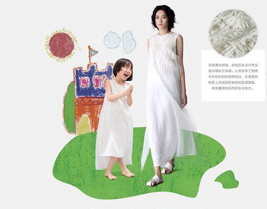 首先看看LOHAS樂活雜志推薦品牌:生活向左。本季LOHAS雜志精選了“生活向左”品牌的亞麻親子裝,一款“亞麻拼桑蠶絲無袖繡花連衣裙”成為夏日女童們公主夢的最佳詮釋。潔白大方,有著亞麻吸汗透氣的舒適,有著絲綢的飄逸順滑,再搭配拼接和刺繡,細節(jié)之處展現(xiàn)不凡的品位,讓孩子們更加時尚。