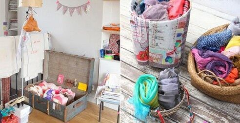 那些不夠看的繁雜亞麻小物件就收在亞麻桶里吧,漂亮顏色的亞麻衣物飾品隱身而藏實(shí)在是可惜,收納在幾個(gè)質(zhì)樸竹筐與復(fù)古的行李箱里,大膽隨意的擺放出來(lái),為收納格調(diào)添一份藝術(shù)色彩。