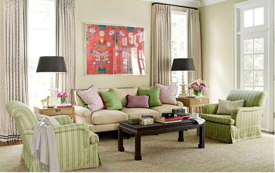 如果你的客廳或臥室需要一些點(diǎn)睛之筆,或者如果你想在不購買新家具的前提下改變一下它們的風(fēng)格,那么更換窗簾、地毯以及靠墊套則是非常好用的一個(gè)妙招。