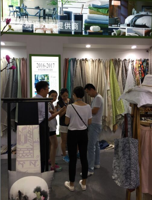 帶有現(xiàn)代感與中國風(fēng)的亞麻家紡展廳、亞麻居家生活場景,以及隨處可見的亞麻家居生活制品,分門別類的系列亞麻面料吸引著所有人的視線。面對消費(fèi)者們對整體化空間概念,整體家居風(fēng)格元素搭配,以及整體家居環(huán)保舒適等訴求的日趨強(qiáng)烈。新申集團(tuán)通過亞麻家紡面料設(shè)計(jì)師整合研發(fā)專家團(tuán)隊(duì),從整體家居方向入手,著力表現(xiàn):在表達(dá)亞麻家紡的同時,能不能把窗簾、壁紙、墻飾、床品、沙發(fā),甚至屏風(fēng)、餐布、桌布、杯墊等都一并考慮周全?構(gòu)建起一個整體家居的藝術(shù)感覺??粗?ldquo;境花•水月”展廳內(nèi)充滿一臉好奇和喜悅的神情,手上不斷快門的手機(jī)、相機(jī),以及輪番對展廳進(jìn)行采訪的媒體,還有前來參觀和指導(dǎo)的紡織工業(yè)聯(lián)合會、麻紡行業(yè)協(xié)會的領(lǐng)導(dǎo)。著實(shí)讓新申亞麻旗下的“麻派”在展會期間火了一把,讓更多人對“家居亞麻面料整體解決方案提供商”有了直觀而深刻的了解。