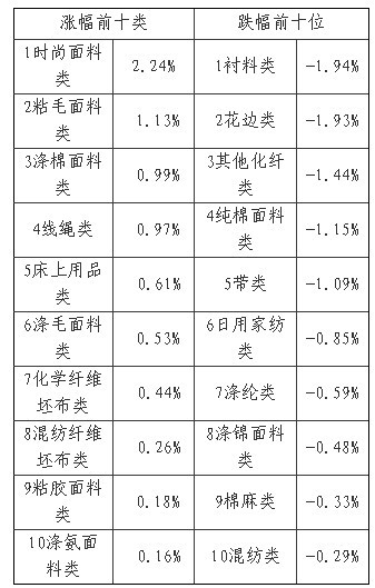 預(yù)計后市傳統(tǒng)交易區(qū)和公司化交易區(qū)成交將繼續(xù)呈增長走勢,預(yù)計后市夏季服裝面料成交將繼續(xù)呈現(xiàn)攀升走勢,服裝面料中的滌綸面料、滌棉面料、粘膠面料、滌錦面料、錦綸面料、時尚面料等面料大類成交將呈現(xiàn)不等量增長走勢,F(xiàn)DY噴織印花雪紡、118DFDY針織印花兩面彈T恤布、118DFDY針織印花四面彈T恤布和印花人棉布創(chuàng)意花型面料成交將繼續(xù)放量攀升,拉動服裝面料價格指數(shù)小幅上揚。 本期時尚面料類、粘毛面料類、滌棉面料類、線繩類、床上用品類價格指數(shù)漲幅位于前五位,銷量比上期不等量增加,部分代表品單價不等量上揚是主要因素。 本期襯料類、花邊類、其它化纖類、純棉面料類、帶類價格指數(shù)跌幅位于前五位,成交量比上期不等量下滑,部分代表品單價不等量下滑是主要因素。 轉(zhuǎn)載本網(wǎng)專稿請注明:"本文轉(zhuǎn)自錦橋紡織網(wǎng)" |