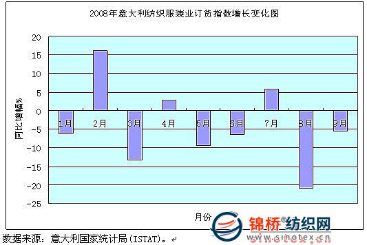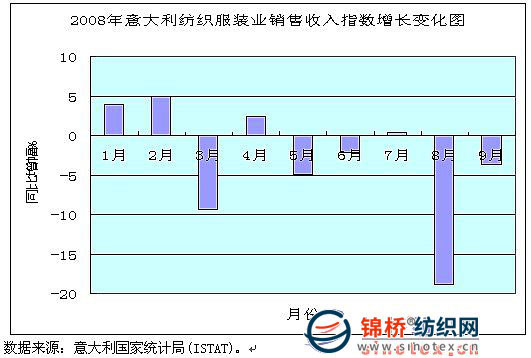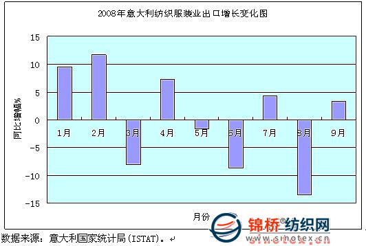 隨著金融危機(jī)對全球經(jīng)濟(jì)負(fù)面作用加大,對意大利實體經(jīng)濟(jì)影響層面也在逐步延伸,影響范圍不斷擴(kuò)大。特別是傳統(tǒng)的紡織服裝業(yè),由于歐美市場占其出口份額超過60%,這些國家消費(fèi)市場下滑直接影響意大利紡織服裝業(yè),表現(xiàn)在出口增長停滯、訂貨明顯下降,加上國內(nèi)消費(fèi)疲軟,生產(chǎn)連續(xù)下降,其面臨形勢不容樂觀。