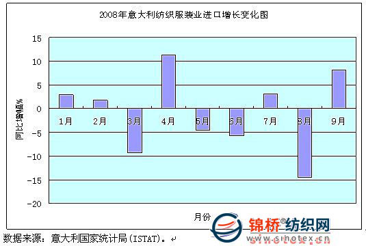 據(jù)ISTAT數(shù)據(jù)顯示,1-9月份意大利紡織服裝業(yè)從全球進(jìn)口總額134.38億歐元,比去年同期下降0.9%,僅9月份當(dāng)月就增長8.1%。