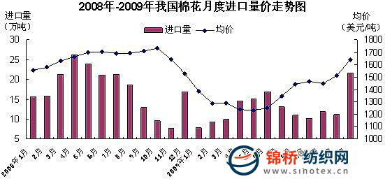 據(jù)海關(guān)統(tǒng)計,2009年我國累計進口棉花152.6萬噸,價值21.1億美元,分別比上年(下同)下降27.7%和39.4%;進口均價每噸1385美元,下降16.3%。