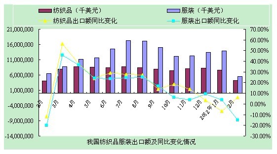 2月紡織品服裝出口情況