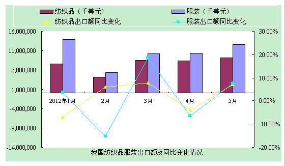 2012年5月紡織品服裝出口情況
