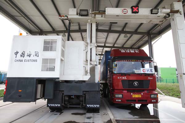 為了切實(shí)履行國(guó)境保護(hù)職能,維護(hù)試驗(yàn)區(qū)內(nèi)的安全穩(wěn)定,上海海關(guān)多措并舉。一線進(jìn)境貨物從港口運(yùn)至試驗(yàn)區(qū)途中繼續(xù)實(shí)施海關(guān)監(jiān)管車輛運(yùn)輸、GPS全程定位監(jiān)管模式。試驗(yàn)區(qū)海關(guān)卡口進(jìn)行了全面的智能化升級(jí)改造,并與試驗(yàn)區(qū)海關(guān)監(jiān)管信息化系統(tǒng)進(jìn)行聯(lián)網(wǎng)對(duì)接。車輛過(guò)卡時(shí),能夠在系統(tǒng)中一次性完成車輛GPS信息核銷、車牌及集裝箱號(hào)自動(dòng)識(shí)別、貨物信息掃描驗(yàn)核以及卡口自動(dòng)抬杠驗(yàn)放等程序。車輛過(guò)卡入?yún)^(qū)流程從過(guò)去的“兩下(車)兩上(車)4敲章”,轉(zhuǎn)變?yōu)楝F(xiàn)在的“零下零上不敲章”,平均時(shí)間從6分鐘縮短至30秒。