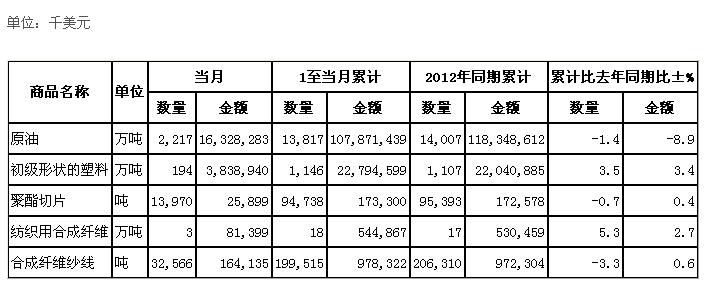 2013年6月全國紡織原料進(jìn)口商品量值表