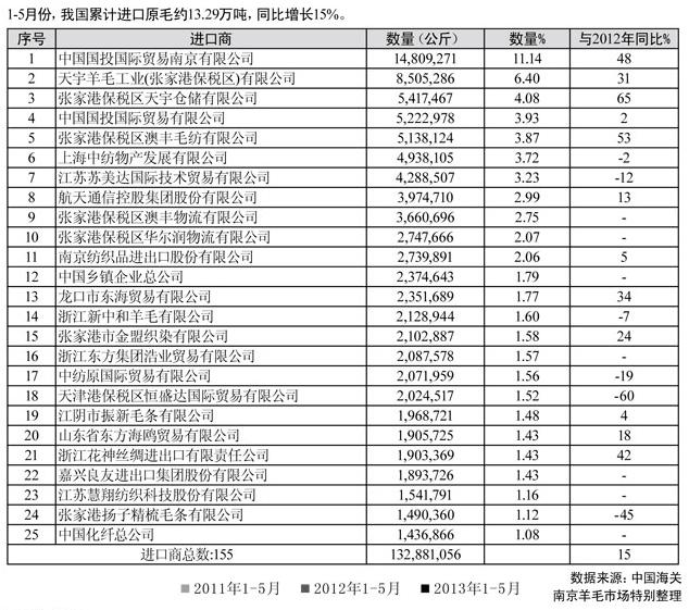 今年1-5月份我國進口原毛前25家企業(yè)