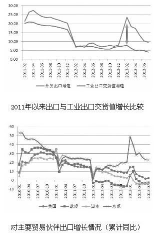 根據(jù)我國(guó)主要貿(mào)易伙伴發(fā)布的進(jìn)口數(shù)據(jù),我國(guó)香港1-7月份自內(nèi)地進(jìn)口增長(zhǎng)14.4%,內(nèi)地對(duì)港出口數(shù)據(jù)為大幅增長(zhǎng)36.1%;美國(guó)1-5月份自中國(guó)進(jìn)口增長(zhǎng)3.1%,我國(guó)對(duì)美出口數(shù)據(jù)為增長(zhǎng)3.5%;歐盟1-4月份自中國(guó)進(jìn)口下降3%,我國(guó)對(duì)歐出口數(shù)據(jù)為下降0.9%;其他國(guó)家與我國(guó)進(jìn)出口統(tǒng)計(jì)數(shù)據(jù)雖略有差異,但區(qū)別不很明顯??梢?jiàn),我國(guó)出口的虛增部分主要來(lái)自對(duì)我國(guó)香港貿(mào)易。