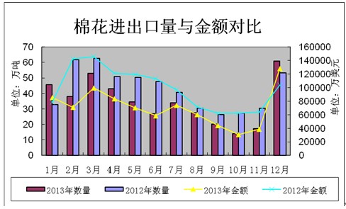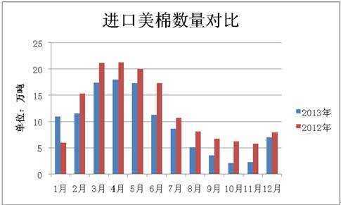 2013年12月份,由于印度新棉大量上市,印度棉進口大增,是本月最大的進口來源國,數(shù)量較上月大幅增加,進口數(shù)量由上月的0.84萬噸增加至本月的34.22萬噸。環(huán)比上漲75.4%。與12年12月份的13.37萬噸相比,同比下降155.9%。