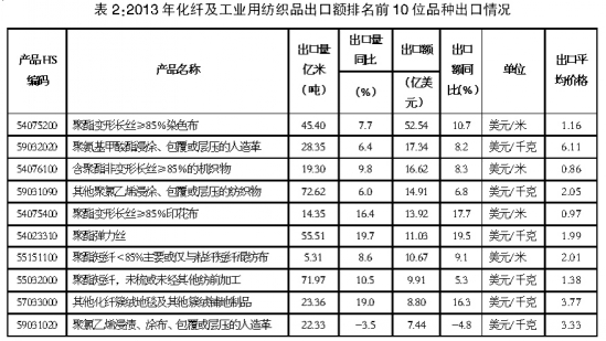 ——2013年紡織行業(yè)出口數(shù)據(jù)