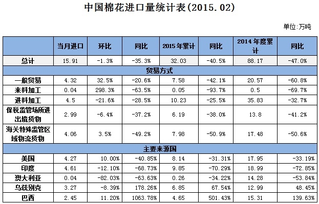 中國(guó)棉花進(jìn)口月度報(bào)告(2015年2月)