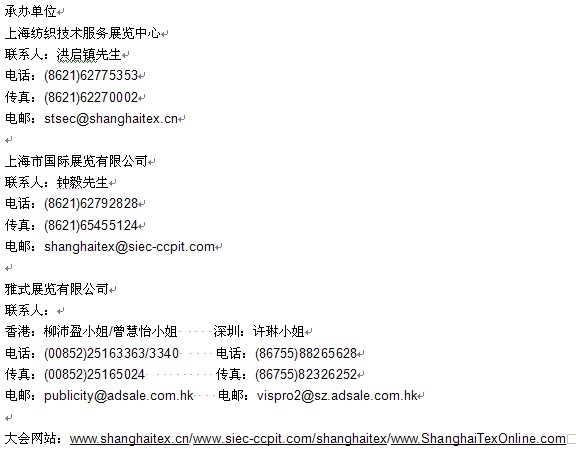 新聞稿 第十五屆上海紡織工業(yè)展 圓滿閉幕 中國歷史最悠久的國際性紡織工業(yè)展——「第十五屆上海國際紡織工業(yè)展覽會」(簡稱「ShanghaiTex 2011」)于2011年6月17日在中國上海新國際博覽中心圓滿落下帷幕。展會以創(chuàng)新為原動力、展品傳遞行業(yè)技術(shù)改造新動向,推動高效整合和對接,助企業(yè)轉(zhuǎn)型升級,積極為展商及買家構(gòu)筑全新的供求和商貿(mào)平臺,品牌展會的魅力和專業(yè)再一次彰顯和得到肯定。 本屆展會,展會面積92000平方米,來自23個國家和地區(qū)的1000家展商,展示高新紡織機械設(shè)備及技術(shù),現(xiàn)場展出機械多達1430臺。為期四天的展會,共吸引來自72個國家和地區(qū)的55080名海內(nèi)外專業(yè)觀眾和買家到場參觀、采購,其中9.4%為海外觀眾,排名前十位的國家分別:印度、韓國、日本、泰國、印度尼西亞、巴基斯坦、土耳其、孟加拉國、越南、俄羅斯。 品牌盛會 高端展品 嘉賓云集 開幕當天,中國紡織工業(yè)協(xié)會副會長高勇、中國紡織工業(yè)協(xié)會秘書長楊紀朝、上海紡織控股(集團)公司總裁朱勇、上海紡織技術(shù)服務(wù)展覽中心董事長杜雙信、上海國際商會副會長趙建東、雅式展覽服務(wù)有限公司總裁朱裕倫等嘉賓親臨展會參觀,他們對「ShanghaiTex 2011」予以再次肯定和高度的評價。 本屆展會,展出的設(shè)備不乏在國際上首次推出的新技術(shù)新產(chǎn)品,還有更多的是在原有設(shè)備基礎(chǔ)上的更新和完善,傳遞“十二五”期間我國紡織業(yè)技術(shù)改造和設(shè)備研發(fā)的重點。參展的展品有紡布機械、織布機械、針織機械、染整機械、紡織化學(xué)品助劑、服裝加工機械、測試儀器及紡織機械零配件等,分布在五大主題展區(qū)內(nèi),為買家提供一站式的采購的技術(shù)交流平臺。雖然2011年紡織業(yè)仍然面臨很多困難,本屆展會仍然取得很好的成果:截止到6月19日,據(jù)不完全統(tǒng)計,簽約成交多達11億元人民幣,其中有65臺展品成交近5千萬元,因為展會時間有限,展會后另有逹10億元貨單正緊鑼密鼓地在商務(wù)談判簽約之中。展會反映客戶對技術(shù)含量高的設(shè)備,新產(chǎn)品開發(fā)所用的設(shè)備關(guān)注度大幅增加。節(jié)能設(shè)備采購量也大幅增加,如2011年采購數(shù)碼印花機的數(shù)量比往年激聚增多,西北部地區(qū)這次采購棉紡設(shè)備較多,有品牌的企業(yè)更注重在完善產(chǎn)業(yè)鏈上加大投資力度。 現(xiàn)場蘊含大商機 彰顯商貿(mào)成效 「ShanghaiTex 2011」基于對行業(yè)現(xiàn)狀的掌握和對市場需求的深切關(guān)注,在不斷拓展展會功能的同時,始終堅持注重貿(mào)易效果,為買家提供一站式的采購和交流平臺,深受海內(nèi)外協(xié)會和知名買家的青睞。 6月14日,由福建省長樂市副市長鄭祖英帶領(lǐng)的長樂200多家棉紡、化纖和經(jīng)編企業(yè)參觀2011年展會,主要目的是借助展會平臺介紹長樂紡織業(yè)發(fā)展情況,加強與海內(nèi)外企業(yè)的交流與合作,推動行業(yè)的健康發(fā)展;6月15日,來自印度、毛里求斯、摩洛哥等國家的近20余家針織和染整優(yōu)質(zhì)生產(chǎn)商、貿(mào)易商、進出口代理及下游企業(yè),與30余家展商進一場“海外采購商—重要賣家洽談會”,現(xiàn)場貿(mào)易對接、促成采購意向,幫助國內(nèi)中小型企業(yè)打開國際市場,受到了采購商和展商的高度評價。 每屆展會都吸引眾多參觀團和知名企業(yè)參觀,2011年展會獲得了近20個海內(nèi)外協(xié)會參觀團和500強企業(yè)團的大力支持,包括:海外有:越南工商會(VCCI),香港生產(chǎn)力促進局(HKPC),印度、印度尼西亞、韓國、泰國、土耳其買家團等;國內(nèi)有:汕頭、兩英、南海、諸暨、長樂、新疆、山東魯泰、江蘇白兔、盛虹集團、寧波萌恒等,他們的到來為「ShanghaiTex 2011」的參展商帶來無限的商業(yè)契機,且給到專業(yè)點評,也印證了展會的實力,部分觀眾評價: VardhmanTextilesLtd.(印度)總采購經(jīng)理K.K.Ohri先生表示:「ShanghaiTex是1個國際采購平臺,展出各種紡織機械。我們很容易在展會找到心儀產(chǎn)品,在現(xiàn)場亦已找到10-15間目標展商。」 SaechangCommercialCo.,Ltd.(韓國)經(jīng)理J.SKwon小姐表示:「今次是我第1次參觀ShanghaiTex,我對W1及W3館最感興趣,特別是可以見到德國展團,在W3館見到一些高技術(shù)的刺繡、繡花機,是以前參觀展會時從未遇見的!」 兩英商會秘書長方武彬先生評價:「展商爭先展示新技術(shù),觀眾絡(luò)繹不絕收獲多,深受國內(nèi)外青睞!」 山東魯泰紡織股份有限公司物資供應(yīng)部經(jīng)理李玉章先生稱:「公司非常重視上海紡織展,2011年是第5次參觀了,每屆都有20人以上的團隊來現(xiàn)場,展會很專業(yè),看到行業(yè)新設(shè)備,找到新供應(yīng)商,對我們很有幫助?!?/p> 江蘇康乃馨織造有限公司毛巾分公司副總張洪玉表示:「展會很專業(yè),配套服務(wù)也很好,展出產(chǎn)品齊全,滿足了我們的需求,下屆展會肯定會支持!」 展會專業(yè)度強 展商評價高 2011年是我國“十二五”規(guī)劃的第1年,國家推動的產(chǎn)業(yè)轉(zhuǎn)型升級和節(jié)能減排戰(zhàn)略都對傳統(tǒng)的紡織業(yè)提出更新和更高的要求,「ShanghaiTex」經(jīng)過近30年積累和品牌優(yōu)勢,歷來受到海內(nèi)外紡織