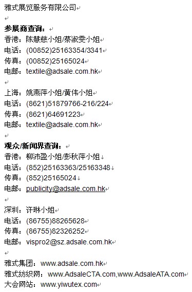 本屆展會觀眾網上預先登記現正火熱進行中。請即瀏覽大會指定信息網www.yiwutex.com并即時登記以收取最新展會信息。