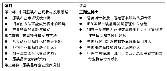 活動四:中國服裝產(chǎn)業(yè)轉型及品牌策略論壇