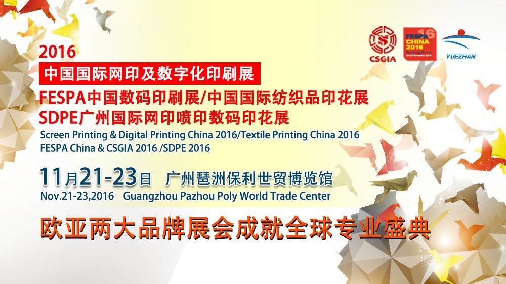 11月21-23日,中國國際網(wǎng)印及數(shù)字化印刷展將在廣州琶洲保利世貿(mào)博覽館隆重召開,屆時,多場精彩活動將輪番上演,帶來一場數(shù)碼印花行業(yè)饕餮盛宴,2016紡織品印花產(chǎn)業(yè)創(chuàng)新發(fā)展論壇、功能性網(wǎng)版印刷在工業(yè)產(chǎn)品上的應(yīng)用高峰論壇將為您解讀當下市場發(fā)展方向,并解讀最新的工藝,歡迎大家蒞臨參觀!