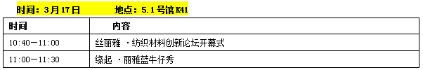 主辦方首次在展館里設立了“絲麗雅•紡織材料創(chuàng)新論壇”,位于5.1號館K41和E62展位。展覽期間,將舉辦五個專題共27場演講,分別是魅力牛仔纖維專場、綠色纖維專場、棉紡推介交流論壇專場、中國纖維流行趨勢發(fā)布專場和功能性纖維專場。觀眾在展區(qū)內(nèi)就可以與知名行業(yè)專家和企業(yè)負責人近距離接觸,聆聽他們的精彩演講,獲取纖維、紗線行業(yè)最新的動向及發(fā)展趨勢。