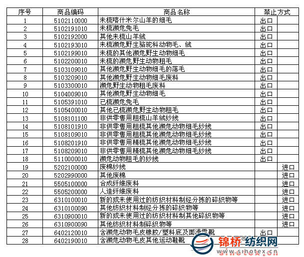 經國務院批準,為保持外貿穩(wěn)定增長,現對加工貿易禁止類目錄進行調整,并將有關事項公告如下: 一、根據2009年海關商品編碼,對調整后的禁止類目錄商品編碼進行修訂,修訂后禁止類目錄共計1770項商品編碼。 二、對以下情況,按照加工貿易禁止類進行管理 ?。ㄒ唬榉N植、養(yǎng)殖等出口產品而進口種子、種苗、種畜、化肥、飼料、添加劑、抗生素等。 三、列入加工貿易禁止類進口商品目錄的,凡用于深加工結轉轉入,或從具有保稅加工功能的海關特殊監(jiān)管區(qū)域內企業(yè)經實質性加工后進入區(qū)外的商品,不按加工貿易禁止類進口商品管理。 列入加工貿易禁止類出口商品目錄的,凡用于深加工結轉轉出,或進入具有保稅加工功能的海關特殊監(jiān)管區(qū)域內企業(yè)加工生產的商品,不按加工貿易禁止類出口商品管理。前述商品未經實質性加工不得直接出境。 以上所稱“實質性加工”的標準,參照《中華人民共和國海關關于執(zhí)行〈非優(yōu)惠原產地規(guī)則中實質性改變標準〉的規(guī)定》(海關總署令第122號)執(zhí)行。 四、本公告也適用于保稅區(qū)、出口加工區(qū)等海關特殊監(jiān)管區(qū)域,但本公告發(fā)布之前區(qū)內已設立并從事相關商品加工貿易的企業(yè)除外。 五、自本公告發(fā)布之日起,商務部、海關總署和環(huán)保總局2008年第22號公告所附目錄停止執(zhí)行,其他規(guī)定仍按原公告執(zhí)行。 附件:2009年加工貿易禁止類商品目錄(紡織部分)