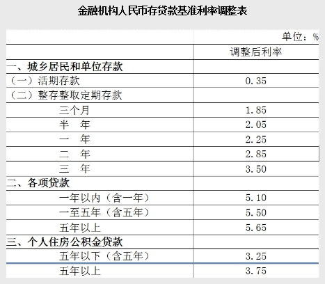 5月11日央行下調(diào)存貸款基準(zhǔn)利率0.25個百分點