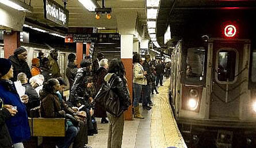 • 人們在美國紐約的布魯克林橋地鐵站等候地鐵。據報道,受油價上漲等因素影響,2008年第3季度美國人選用地鐵、輕軌、巴士等公共交通工具出行達到28億人次,為歷史新高。   由于美國汽車業(yè)救援計劃取得進展及歐佩克可能大幅減產的消息抵消美國汽油商業(yè)庫存增幅大于預期的影響,國際油價12月10日大幅震蕩后再度升至每桶43美元