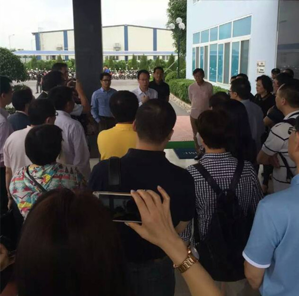 11月10日,中國紡織品進(jìn)出口商會(huì)貿(mào)易投資促進(jìn)團(tuán)赴越南、新加坡和孟加拉出行第二日,來到越南南定省進(jìn)行交流訪問。出訪團(tuán)重點(diǎn)參觀了南定省一家臺(tái)資企業(yè),這是一家集針織、梭織、印染齊全的紡織企業(yè)。