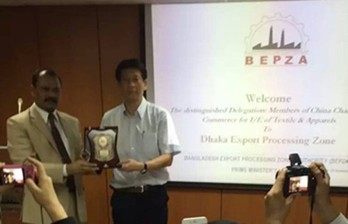 11月14-17日,中國紡織品進出口商會張錫安副會長率國內(nèi)貿(mào)易投資促進團來到交流活動的最后一站——孟加拉。11月14日上午,張錫安副會長率領(lǐng)國內(nèi)十余家紡織服裝企業(yè)負責(zé)人前往孟加拉出口加工貿(mào)易區(qū)管理委員會進行拜訪交流。出口加工貿(mào)易區(qū)總經(jīng)理對孟加拉的吸引投資政策作了專題介紹,他歡迎中國企業(yè)家到孟投資。張錫安副會長在發(fā)言中談到,希望今后中孟雙方企業(yè)在“一帶一路”戰(zhàn)略框架下把握更多的合作機會。