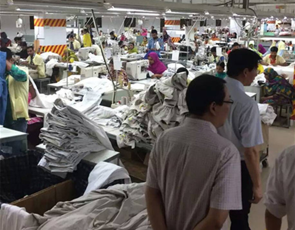 上午的拜訪結(jié)束后,下午貿(mào)易投資促進團參觀了兩家在孟投資的紡織服裝企業(yè)。一家是德資企業(yè),主要生產(chǎn)梭織服裝;德國是孟加拉紡織服裝第二大出口目的地。另一家是于1994年在孟加拉首都達卡開發(fā)區(qū)投資興建的港資企業(yè)South China,主要生產(chǎn)坯布和印染布,有近一萬名員工的規(guī)模。