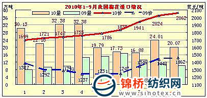 2010年1-9月棉花進(jìn)口主要來(lái)源國(guó)別統(tǒng)計(jì)
