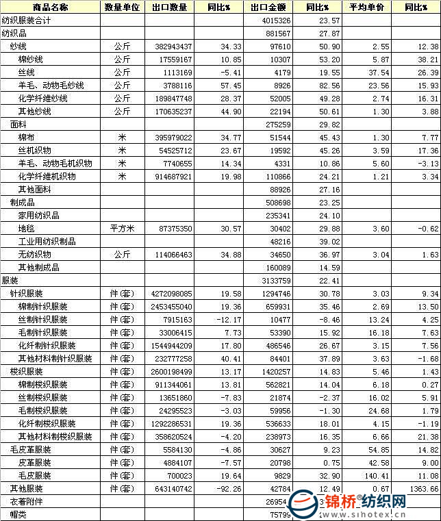 錦橋紡織網(wǎng)—資訊頻道> 統(tǒng)計資料>正文 2010年1-11月我國對歐盟出口紡織品服裝統(tǒng)計