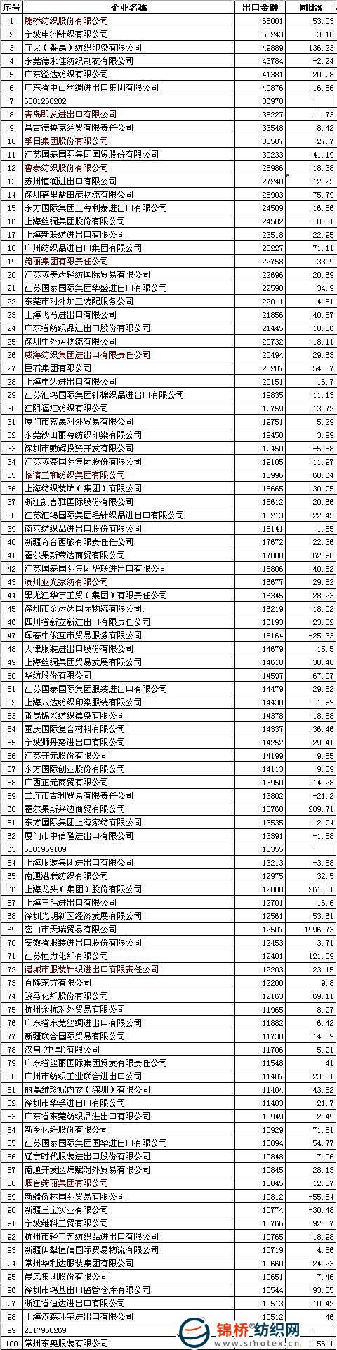 錦橋紡織網(wǎng)—資訊頻道> 統(tǒng)計(jì)資料>正文 2010年1-10月中國(guó)紡織品服裝出口企業(yè)排名