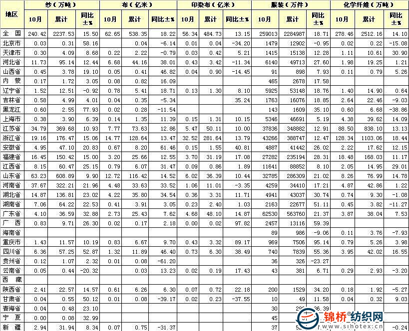 2010年1-10月紡織工業(yè)主要產(chǎn)品產(chǎn)量統(tǒng)計表