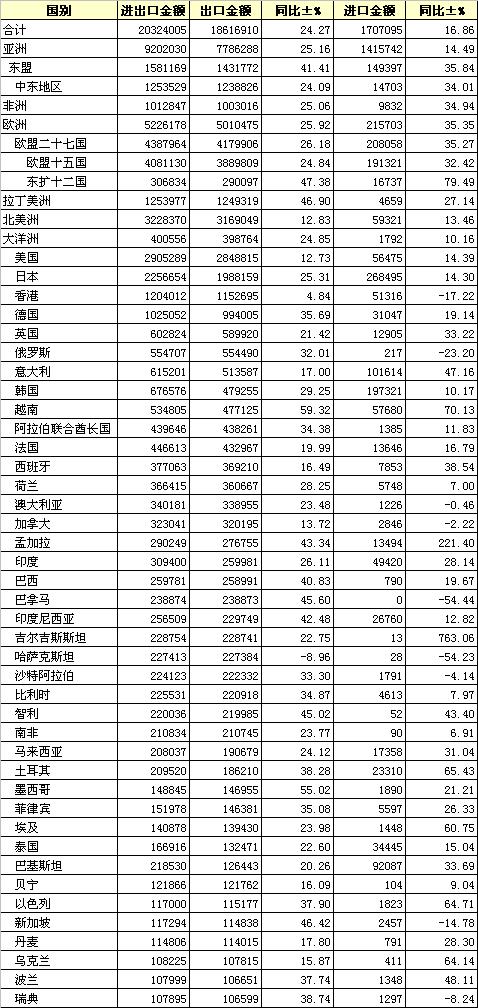 2011年1-9月我國紡織品服裝進(jìn)出口國別統(tǒng)計(jì)