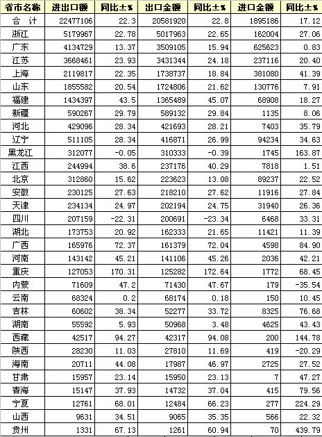2011年1-10月全國(guó)紡織服裝進(jìn)出口分省市統(tǒng)計(jì)