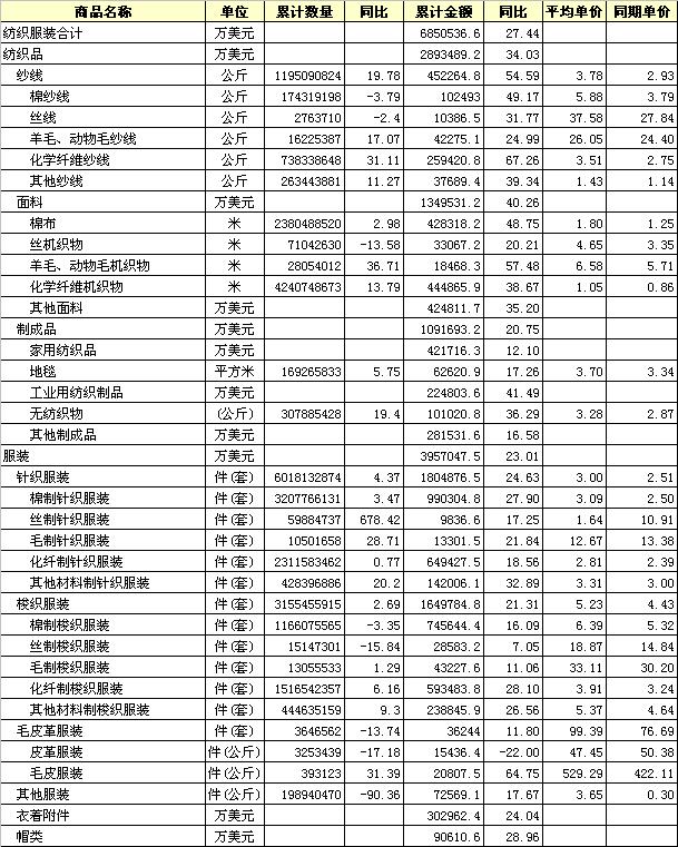 (金額:萬美元) 轉(zhuǎn)載本網(wǎng)專稿請(qǐng)注明:"本文轉(zhuǎn)自錦橋紡織網(wǎng)" |
