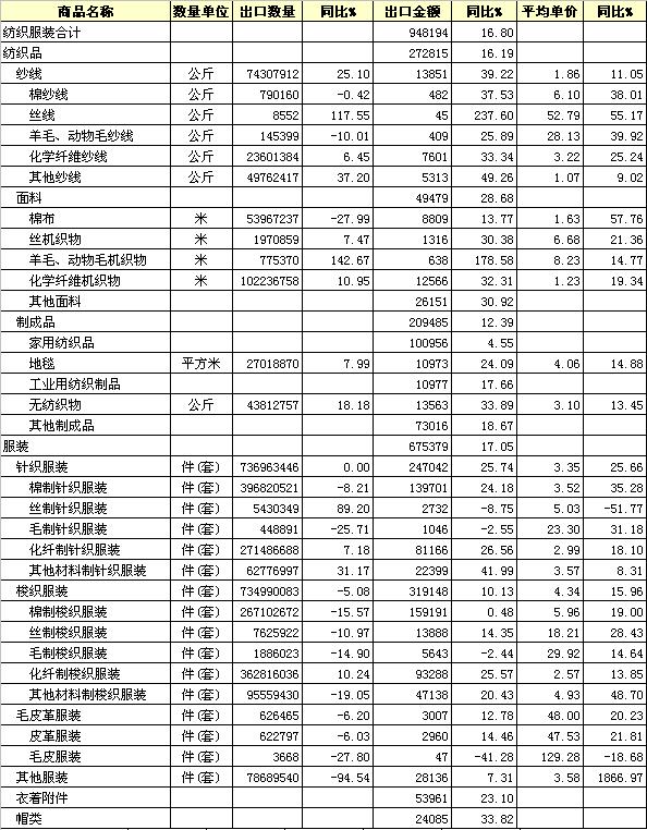 (金額:萬美元) 轉(zhuǎn)載本網(wǎng)專稿請注明:"本文轉(zhuǎn)自錦橋紡織網(wǎng)" |