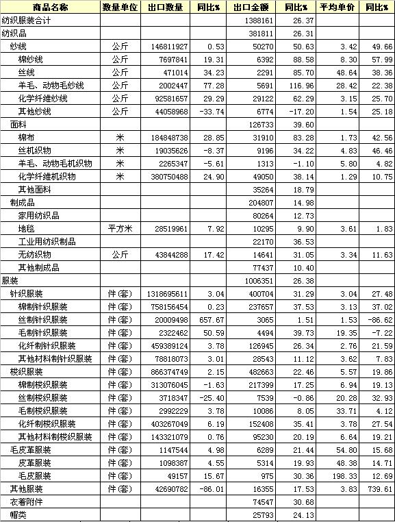 (金額:萬美元) 轉(zhuǎn)載本網(wǎng)專稿請注明:"本文轉(zhuǎn)自錦橋紡織網(wǎng)" |
